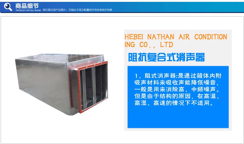 (一)消聲器 1。阻式消聲器:是通過吸聲材料來吸收聲能降低噪音,一般的穿孔板消聲器就屬于這個類型,一般是用來消除高、中頻噪聲。但是由于結(jié)構(gòu)的原因,在高溫、高濕、高速的情況下不適用。 2??故较暺鳎菏峭ㄟ^改變截面來消聲的。我們常用的消聲靜壓箱都是這個原理。一般降低中、低頻噪音。對風(fēng)系統(tǒng)沒有具體的要。 3。阻抗復(fù)合式:當(dāng)然是結(jié)合二者的結(jié)構(gòu)原理??梢韵椭懈哳l噪音。但是對風(fēng)系統(tǒng)的要同阻式消聲器 4、對于一般的民用空調(diào)通風(fēng)系統(tǒng),我個人認(rèn)為選用阻抗復(fù)合消聲器為好。 阻性消聲器具有良好的中高頻消聲性能。按氣流通道幾何形狀不同,可分為直管式、片式、折板式、迷宮式、蜂窩式、聲流式、障板式、彎頭式等??剐韵暺鬟m用于消除中低頻噪聲或窄帶噪聲。按其作用原理不同,可分為擴張式、共振腔式和干涉式等多種型式。阻抗復(fù)合式消聲器,有共振腔、擴張室、穿孔屏等聲學(xué)濾波器件,綜合了阻性消聲器良好的中高頻消聲特性和阻抗性消聲器較好的低頻消聲特性,因此其消聲頻帶寬,它是最常用的標(biāo)準(zhǔn)消聲器系列之一。適宜風(fēng)速為~米,可單獨使用,也可串聯(lián)使用。消聲效果:低頻~dB/m,中頻~dB/m,。根據(jù)《空氣調(diào)節(jié)》,消聲彎頭,消聲靜壓箱均屬于消聲器的一種。推薦看下連云港華博機械設(shè)備的設(shè)備 用消聲器的方法僅僅是沒辦法的辦法。 你可以把伸入房間的部風(fēng)風(fēng)管修改一下 1)鐵皮風(fēng)管做成內(nèi)保溫。使用歐文斯科寧的玻璃棉板bgt貼面,做出來的效果可以到達(dá)非常好的效果。 2)如果你的修改工作很大,建議使用歐文斯科寧的得寶直接風(fēng)管。時間很快。 祝你成功,如果有問題可以繼續(xù)