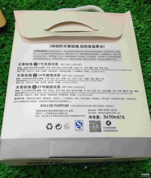 網(wǎng)友麗麗認(rèn)為整體感覺不錯,瞧著不僅美觀,價格也很不錯,希望能好一點。 臺灣網(wǎng)友說SPECIALX詩柏軒香水快遞太速度了,五天就到了,看上去和圖片一樣,很不錯,一次不錯的購物,贊一個。 萬用戶對這款產(chǎn)品的整體測評:%的人認(rèn)為發(fā)貨速度一般。