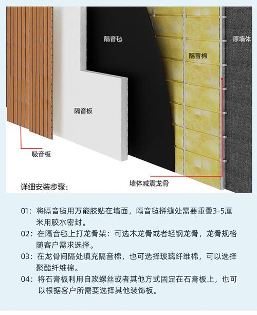 用你說的輕鋼龍骨加隔音棉和用輕質(zhì)磚砌墻這兩種方式都不能解決問題。 專業(yè)的鋼琴房隔音,應(yīng)該采取這種結(jié)構(gòu):“mm石膏板2mm靜音寶隔音氈mm石膏板mm輕鋼龍骨(龍骨間填充高密度吸音棉)mm石膏板2mm靜音寶隔音氈mm石膏板”(如下圖所示) 該隔墻結(jié)構(gòu)總厚度為mm。優(yōu)先考慮的是隔音效果,成本會比普通石膏板隔墻高,但其隔音效果不會低于普通磚墻。 中間空腔填充的高密度吸音棉,可以選用k的巖棉板,或者k的玻璃棉板。如果對環(huán)保性要較高,可以采用聚酯纖維環(huán)保吸音棉。 ,隔音效果好,并且對人體沒有傷害。輕鋼龍骨隔墻內(nèi)的空氣層填充礦物質(zhì)棉的吸聲材料是隔音量的提高非常明顯,同時它的設(shè)計權(quán)隔音量提高7-8dB,并且還能提高板墻的防火、保溫性能及節(jié)能效果。 ,正常室內(nèi)的隔音墻用的是輕質(zhì)磚,不僅不會增加樓面負(fù)重而且隔音效果好。 建議輕鋼龍骨加隔音棉效果會更好。 輕鋼龍骨加隔音棉的效果更好一點?;蛘呤窃谳p質(zhì)磚墻外面再做一層隔音層,效果會更好。