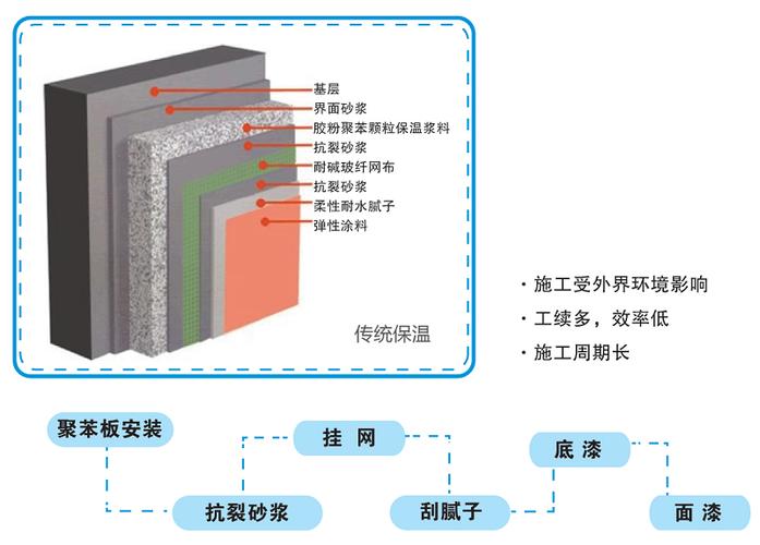 2、外墻保溫涂料的系統(tǒng)匹配性良好,各種材料層間結合好,系統(tǒng)剛?cè)嵯酀?,具有?yōu)異的耐凍融性能,外墻保溫涂料具有防水透氣性能,防護涂層和粘結劑層均具有微孔結構,由他們共同構筑的防護層確保系統(tǒng)既防水又透氣,可以直接面對火焰隔熱保溫,導熱系數(shù)都只有0。